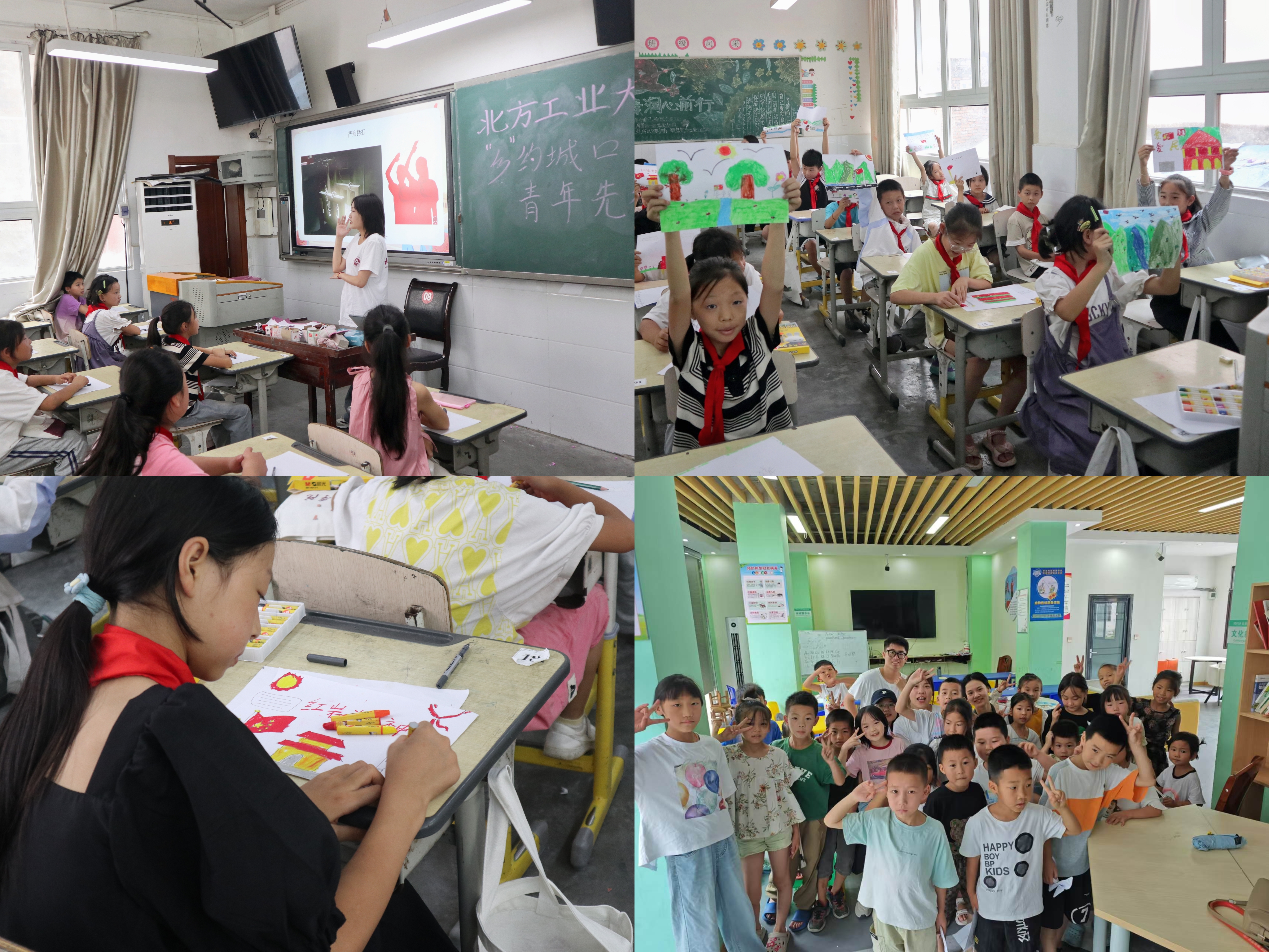 实践团成员带领同学们观看了爱国题材短片,并带来了一场生动而深刻的“红岩精神”主题宣讲,通过江姐的故事,同学们深刻体会到了如今幸福生活的来之不易。活动特别设置了“我心中的祖国”绘画环节,孩子们用稚嫩的笔触勾勒出五星红旗、和平鸽等图景,表达自己对祖国的纯真情感。此次活动实践团队将自身所学运用于实践中,通过丰富多彩的形式,增强了小学生勤奋学习、报效祖国的责任感使命感,引导其将热爱祖国的种子根植于心。