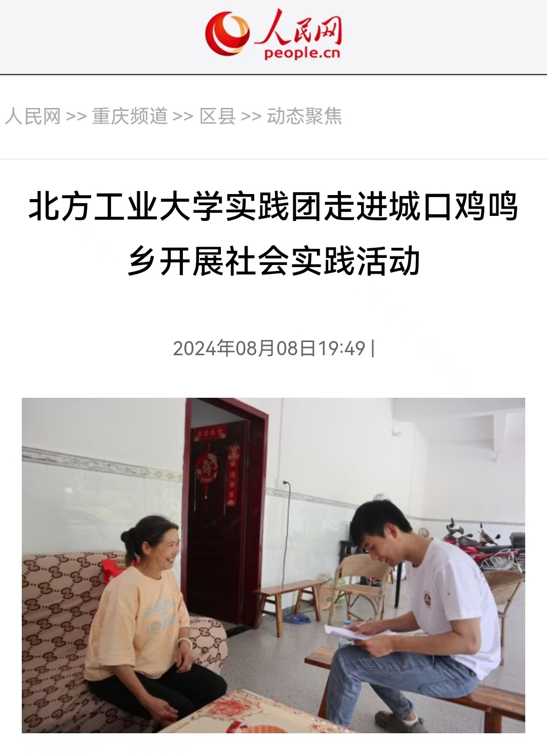 为深入学习贯彻习近平总书记关于“三农”工作的重要论述,以实干担当迎接和庆祝中华人民共和国成立75周年,近日,英国beat365官方网站“‘乡’约城口,青年先行”实践团从北京跨越一千多公里来到重庆市城口县鸡鸣乡,聚焦产业振兴、文化振兴、生态振兴三大方面,联动政府、企业以及学校三者展开实践活动,受到人民网关注并报道。实践团的同学们深入乡村生活,感悟乡村发展,立足专业特长,以青年才智为全面推进乡村振兴蓄力赋能。