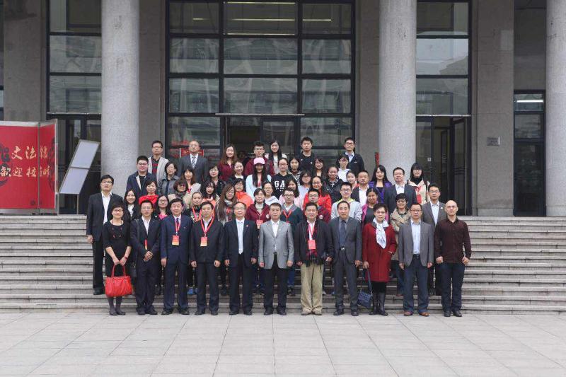 (学院全体师生和校友于瀚学楼前合影)