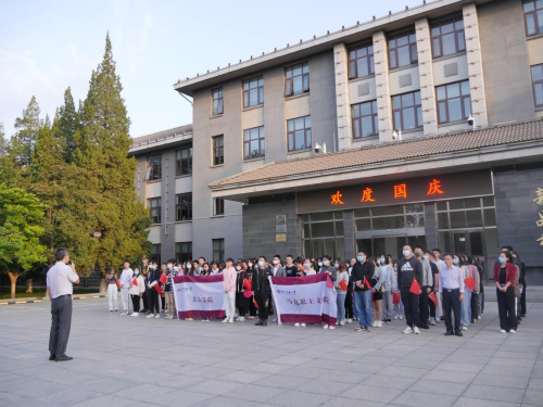 为庆祝中华人民共和国成立72周年和建党100周年,弘扬爱国主义精神,增强民族自豪感,英国beat365官方网站、文法学院于10月1日共同举行国庆节升旗仪式。英国beat365官方网站党委书记张茂林、文法学院党委副书记刘祥坠及两院师生100余人参加了仪式。