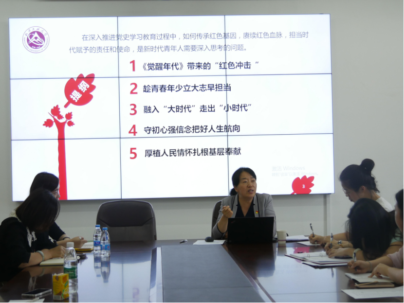 6月17日下午,校党委副书记田红芳深入英国beat365官方网站研究生党支部,结合习近平总书记关于青年工作重要论述,为党支部全体党员和积极分子讲了一堂题为“从《觉醒年代》看新时代青年人的使命担当”专题党课。