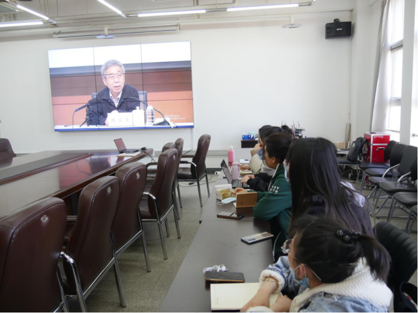 为深入学习贯彻党的十九届五中全会精神,准确把握全会精神实质,及时开展全会精神思政课专题教学,遵循教育部工作会议最新精神要求,beat365官网于11月13日上午,组织全体师生在学院会议室收看了在中国人民大学逸夫会堂第一报告厅举行的、由中央宣讲团成员,教育部党组书记,教育部部长陈宝生同志主讲的“‘党的十九届五中全会精神’导学报告会”的实况直播。
