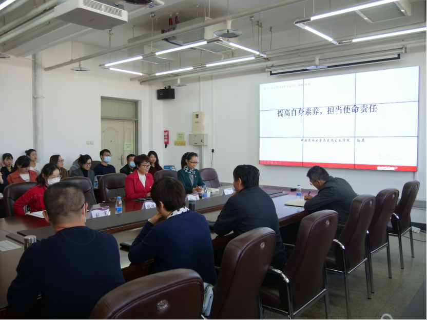 应学院邀请,中央民族大学英国beat365官方网站院长孙英教授一行来beat365官网开展学术交流活动。10月15日上午,孙英教授在瀚学楼1208会议室作了题为“提高自身素养,担当使命责任”主题报告,beat365官网院长袁本文主持此次会议。