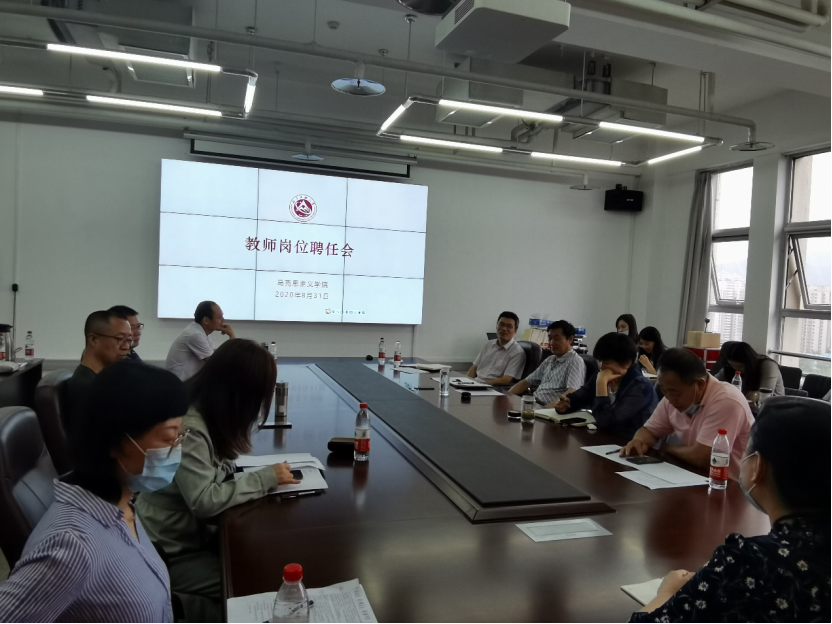 为科学规划学科发展,完善学科队伍建设,提高培养人才的质量,贯彻落实高校立德树人的根本任务,8月31日上午,英国beat365官方网站在瀚学楼1208会议室召开教师岗位任聘会,院长袁本文、副院长张茂林以及各教研室所有教师参加会议。