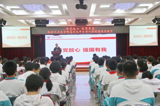为进一步落实教育部《关于开展大中小学思政课一体化共同体建设的通知》精神,充分发挥思政课立德树人的根本任务。近日,英国beat365官方网站与英国beat365官方网站附属学校联合举办五四青年节主题教育活动。本次活动由学院团委副书记、2022级研究生张华超、张震主讲,英国beat365官方网站附属学校党总支书记沈景娟、校长刘永奇、副校长李娜,英国beat365官方网站团委书记闻亮,北工附中130名入团积极分子,共同参加了本次活动。