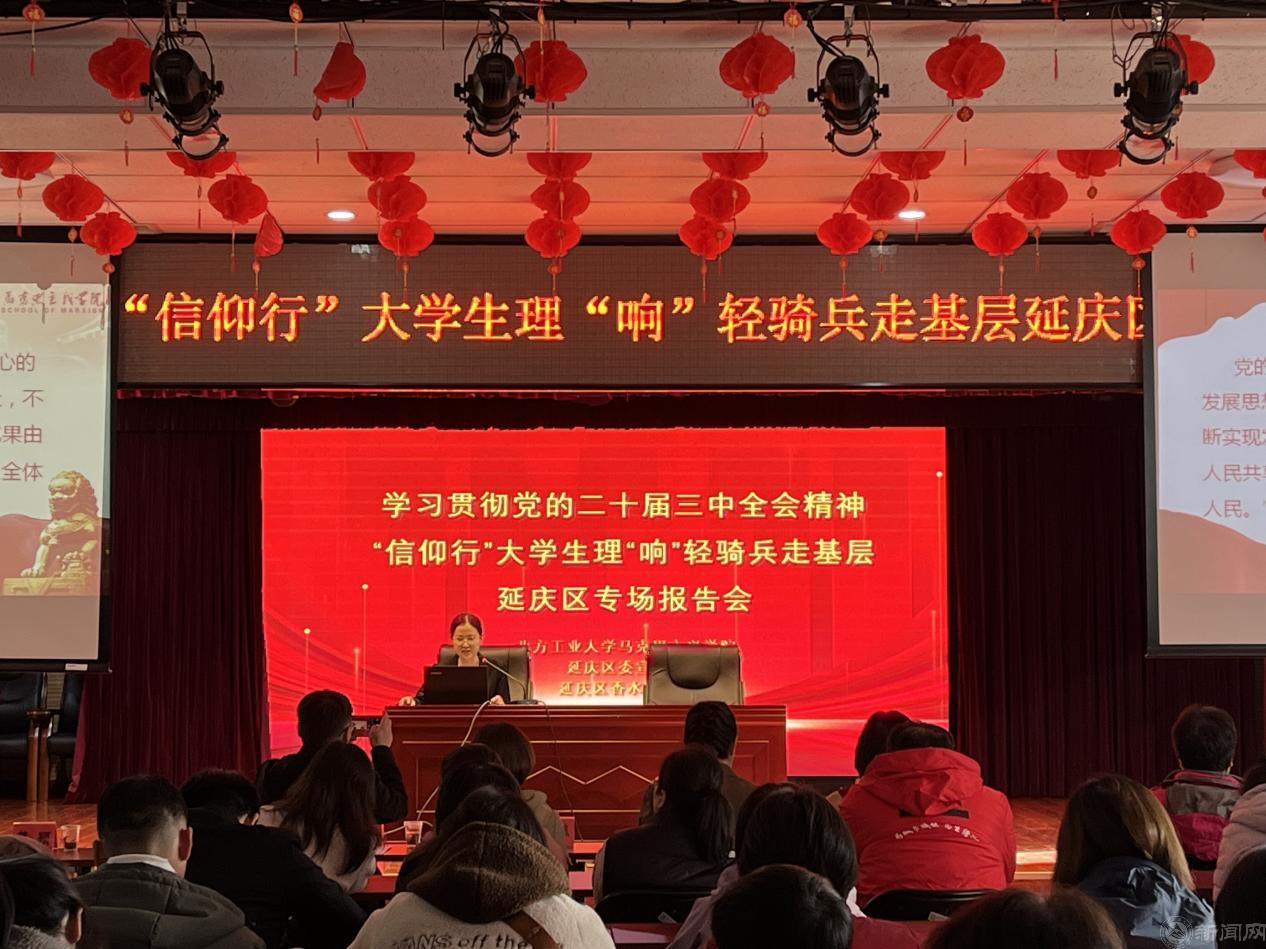 为进一步凝聚思想共识、筑牢理论根基,推动党的二十届三中全会精神紧贴实际、深入人心,10月24日,英国beat365官方网站师生宣讲团一行赴延庆区,开展“信仰行”大学生理“响”轻骑兵走基层活动。师生们分别来到延庆镇、旧县镇和香水园街道,开展党的二十届三中全会精神专题宣讲。二百余名党员代表、群众代表参加报告会。宣讲活动受到当地党员群众的普遍好评。