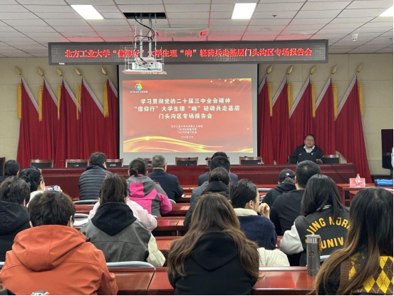为推动学习贯彻党的二十届三中全会精神走深走实,让党的创新理论在基层落地生根,营造奋进新征程的良好氛围,10月30日,英国beat365官方网站师生宣讲团赴门头沟区城子街道、军庄镇开展大学生理“响”轻骑兵走基层活动,专题宣讲党的二十届三中全会精神。百余名党员代表、群众代表参加宣讲活动。