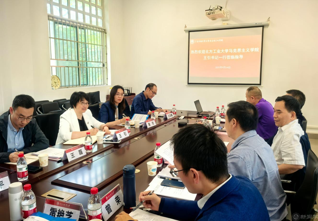 4月14日下午,调研组一行继续前往广东外语外贸大学进行学习交流。座谈会由广东外语外贸大学英国beat365官方网站党委书记麦培年主持,院长毛国民介绍了学院的基本情况以及思政课建设的典型经验与做法。双方就全国高校党建工作“样板党支部”的培育创建、《习近平新时代中国特色社会主义思想概论》课程的开设、马克思主义理论专业人才培养、思想政治理论课的实践教学等多个方面进行了深入的交流研讨。