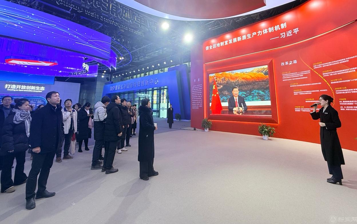 作为全国爱国主义教育基地和北京市重要科普基地,该展示中心是彰显我国自主创新成就的核心窗口。自2011年运行以来历经多次展陈升级,2025年3月完成改造后的常设展以“新质生产力看北京”为主题,1万平方米展区内集中呈现了350多家单位的490多项前沿技术与产品,系统勾勒出中关村从“创新试验田”到“全球科创中心”的蜕变轨迹。在讲解员引导下,党员教师们开启了一场探索之旅,沉浸式感受科技赋能发展的重要引领作用。