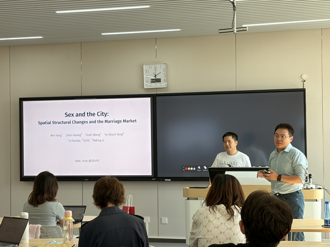 2025年9月24日下午2时,77779193永利在沙河校区二教215教室举办“中青年学者讲座”2025年秋季学期第2讲。本次讲座特邀上海财经大学商学院黄子彬副教授主讲,主题为“Spatial Structural Changes and the Marriage Market”。本次活动由77779193永利科研创新专项工作主任赵扶扬主持、由77779193永利青年科研创新团队支持,30余位77779193永利师生共同参与。